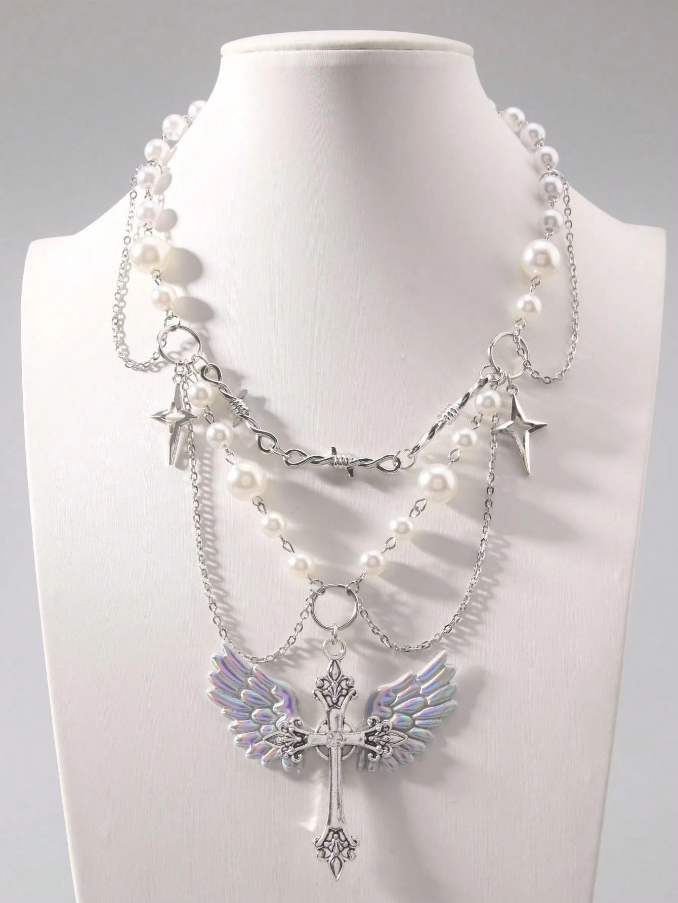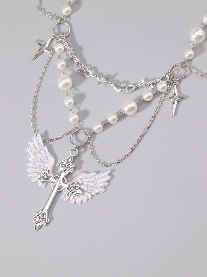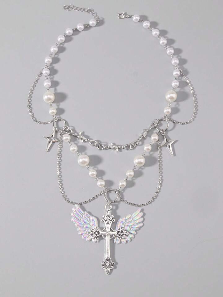 Fairycore Collana con pendente a croce in finta perla, di stile Y2K, alla moda e dolce, perfetta per l'uso quotidiano e per le uscite