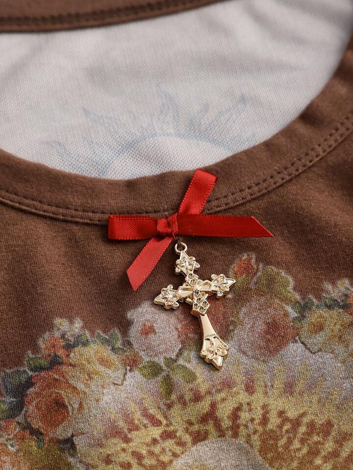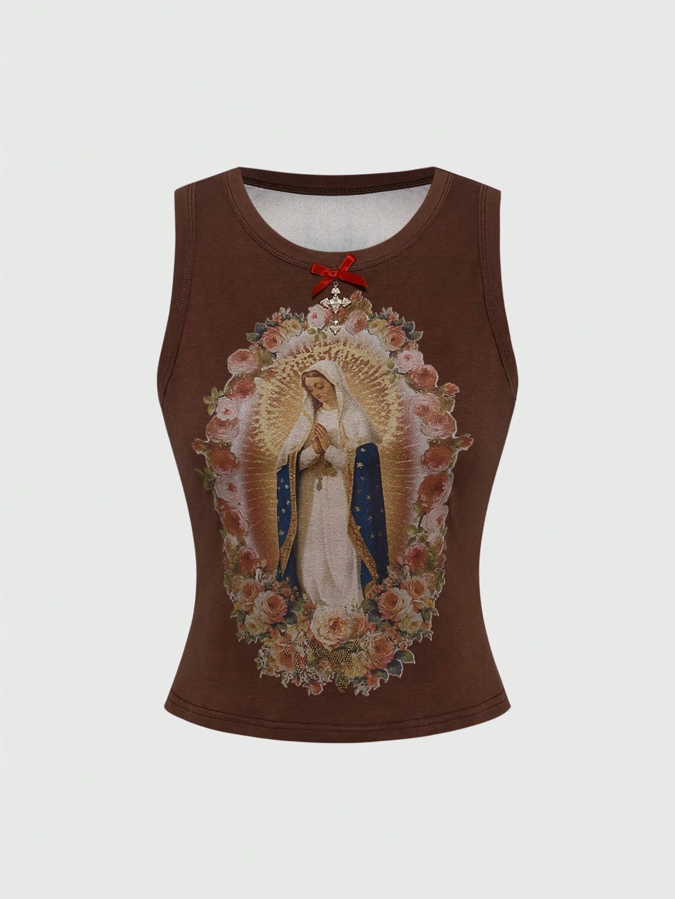 Fairycore Canotta da donna con stampa di angeli e madonne, decorata con croci, in stile Y2K Goth usurata
