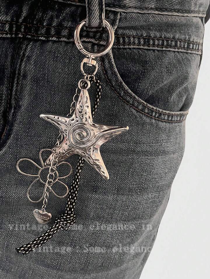 Fairycore Catena per pantaloni stile Y2K, ciondolo a forma di stella minimalista, accessori portachiavi