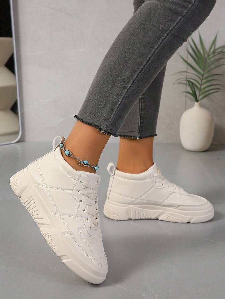alla moda da donna casual piatto skateboarding Scarpe , suola-spessa bianco alte Sneakers , traspirante