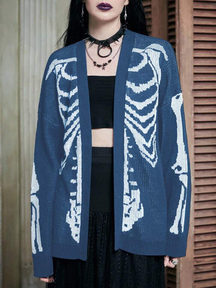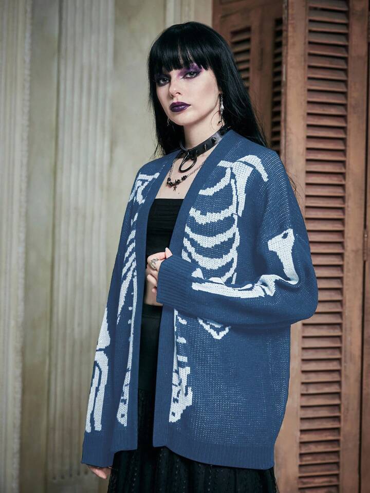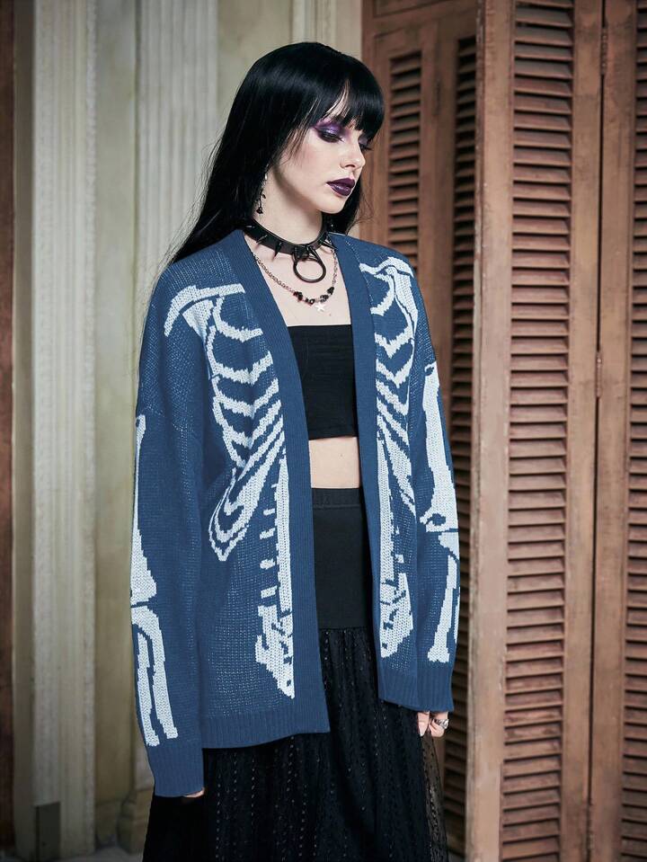 Cardigan con scollo a goccia e motivo a teschio alla moda, adatto per autunno/inverno