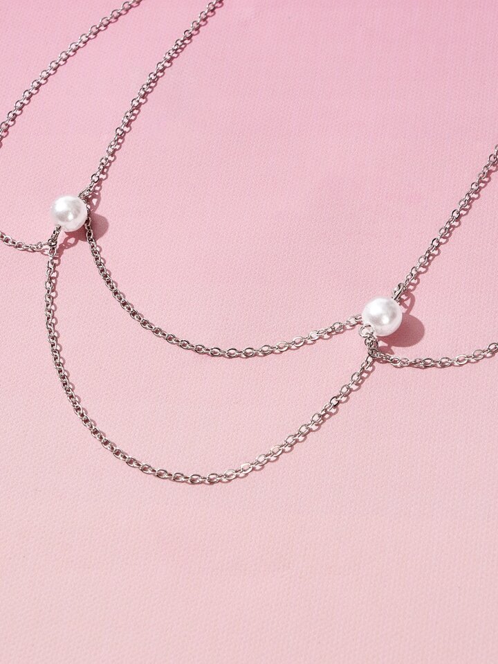 Cintura A Catena Decorata Con Perle Finte, Elegante