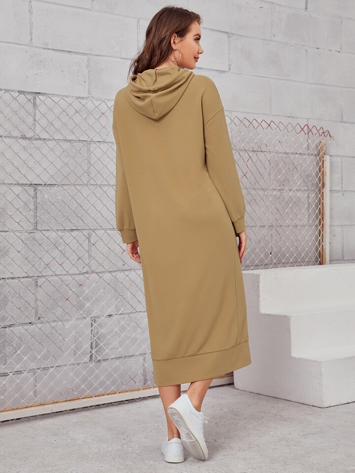 Figure and Letter Graphic Split Hem Hooded Sweatshirt Dress