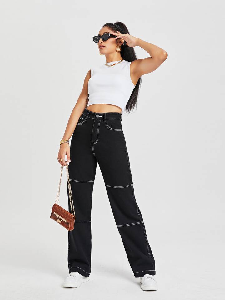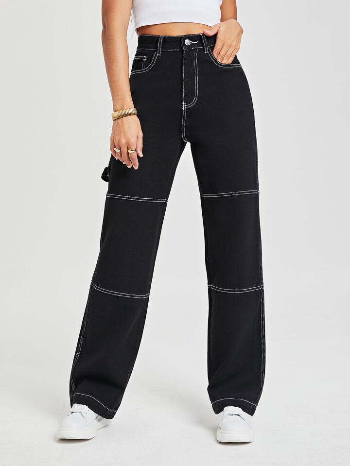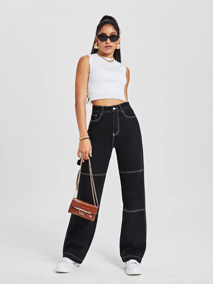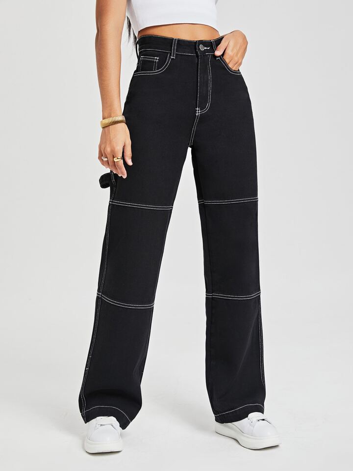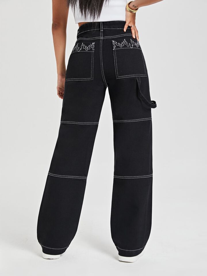 Jeans fuoco con ricamo vita alta Pantaloni larghi