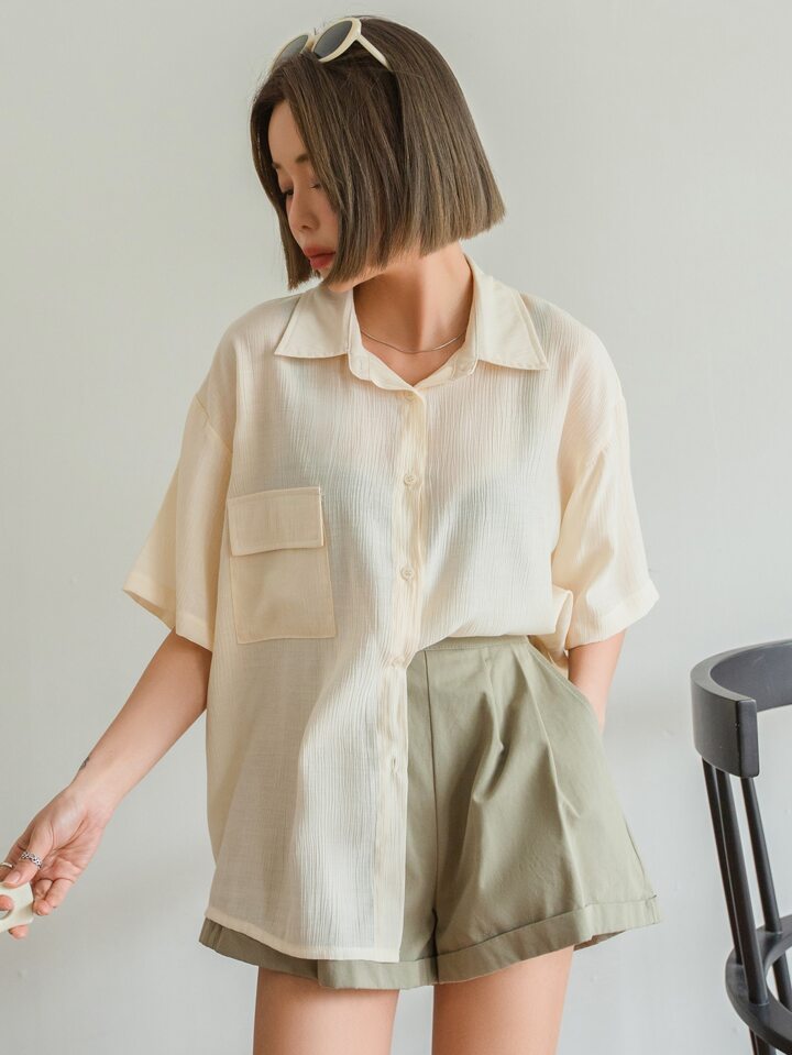 Camicia tasca con patta spalle cadenti