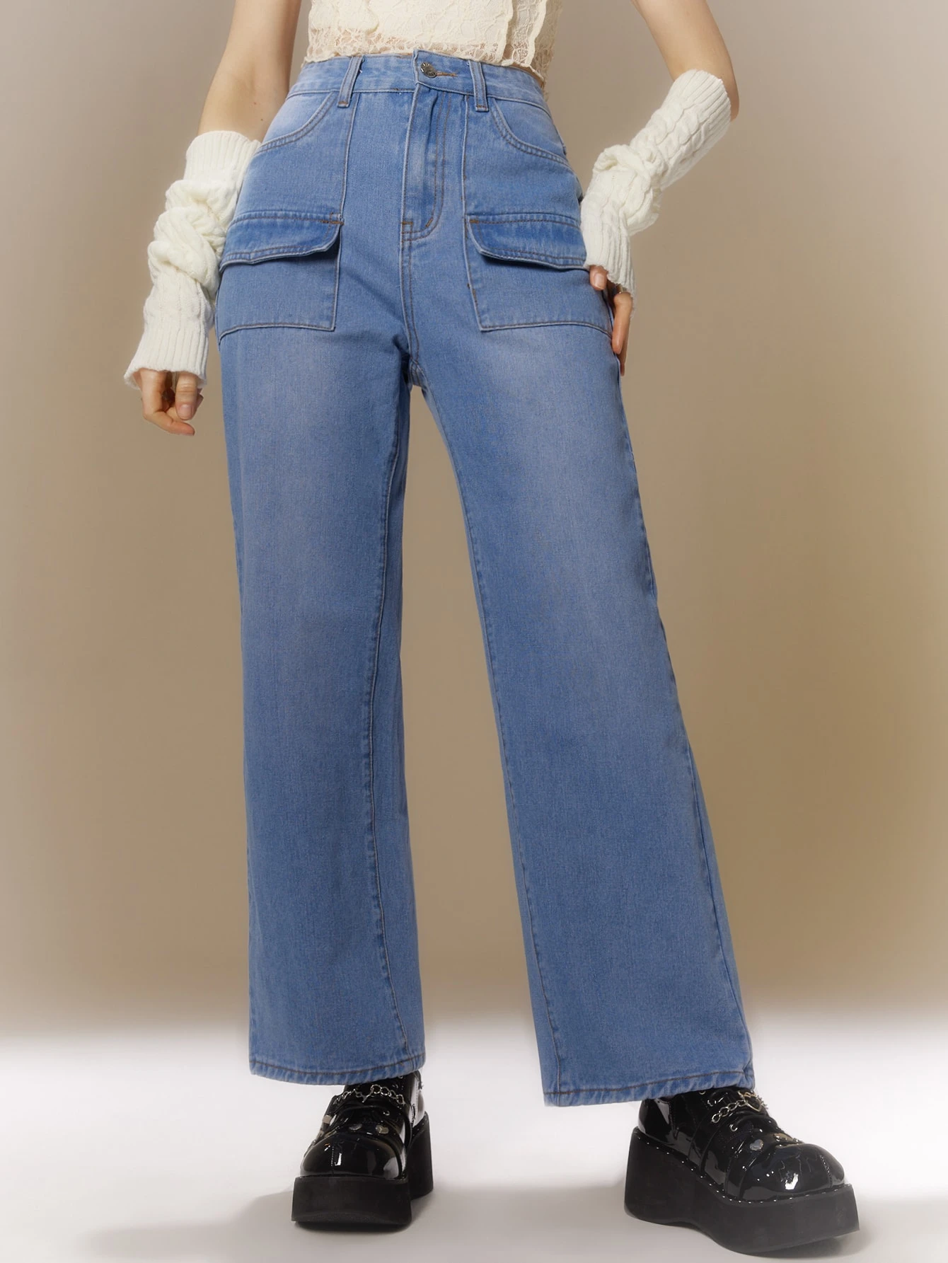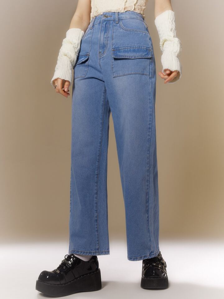 Jeans tasca con patta gamba ampia