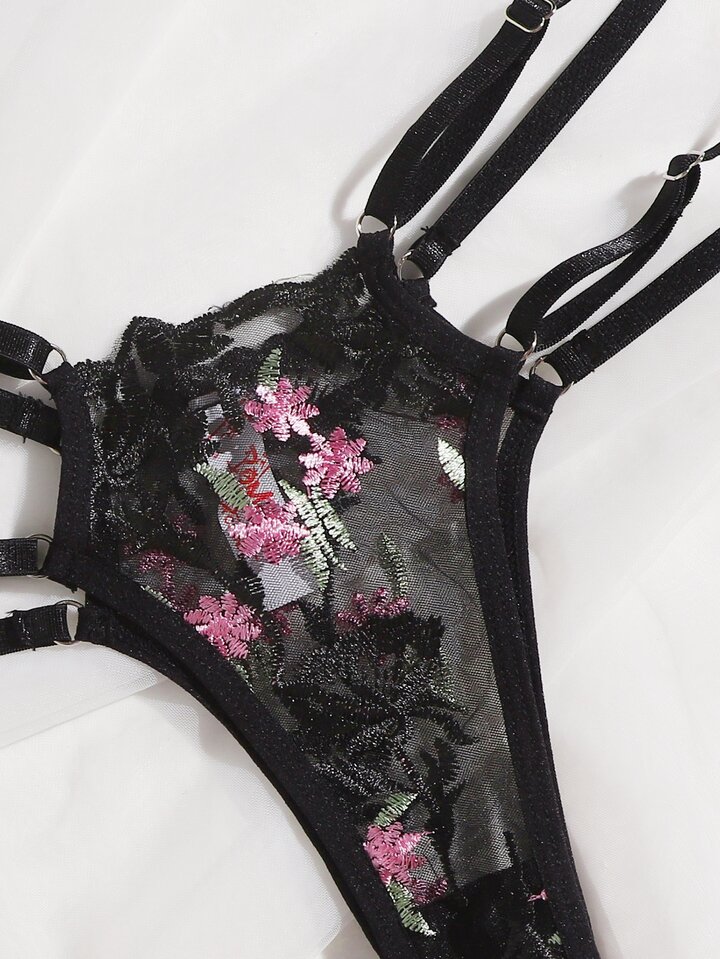 Set lingerie con ricamo floreale maglia