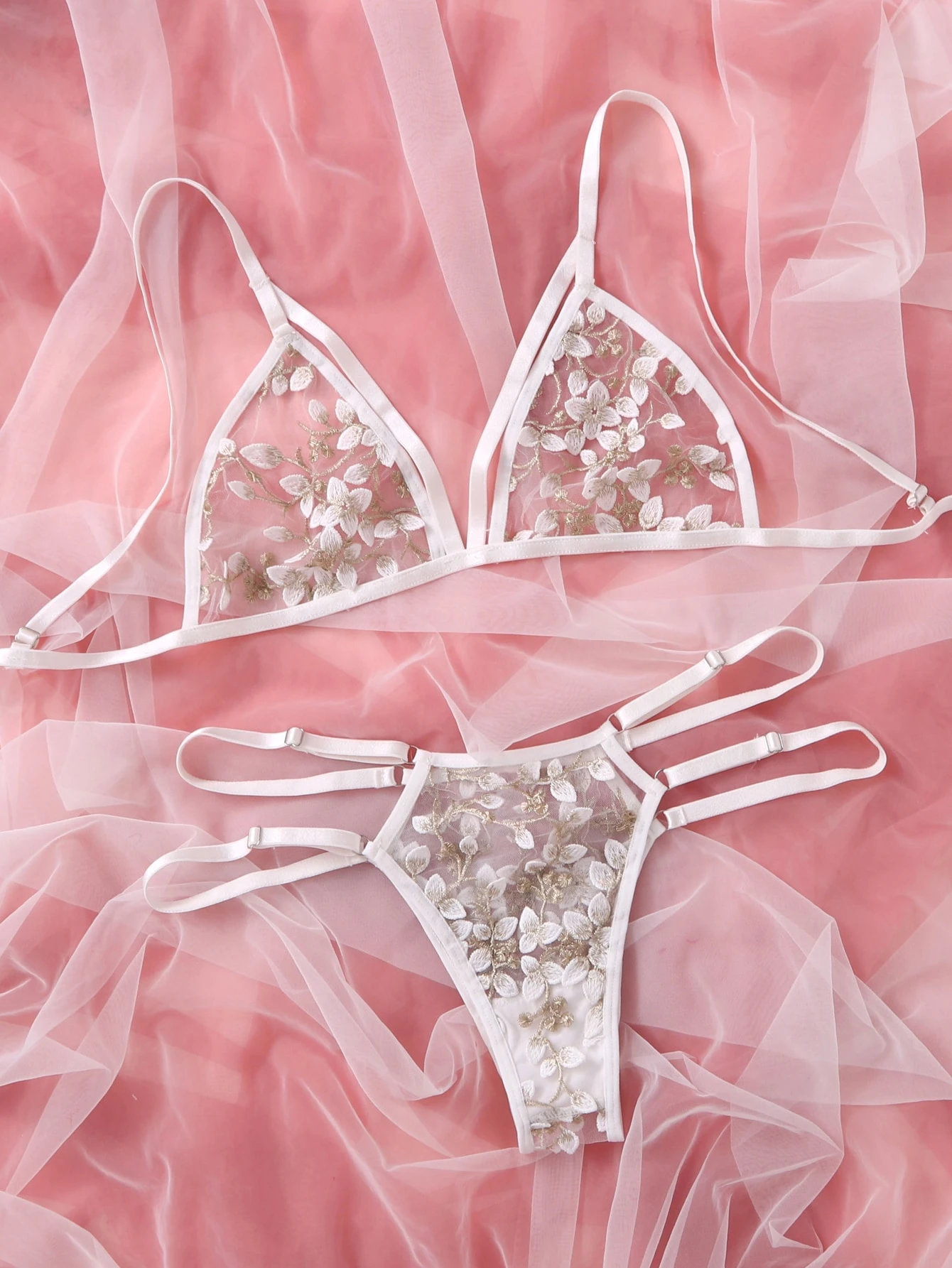 Set lingerie con ricamo floreale mesh