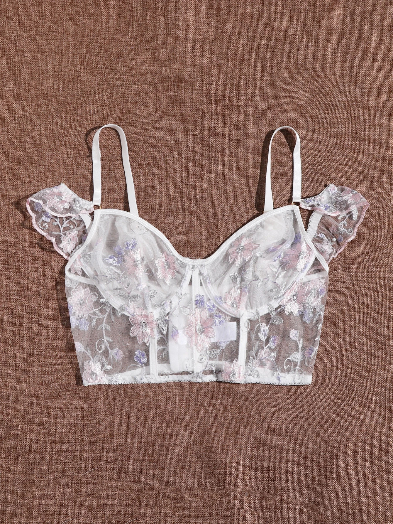 Reggiseno con ricamo floreale maglia Volant