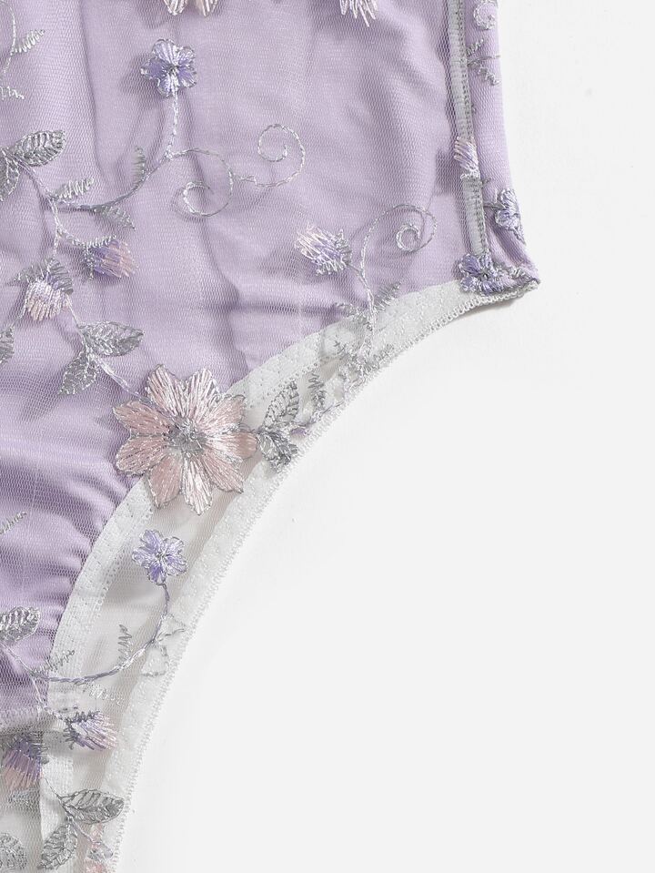 Body con ricamo floreale con spalle annodate