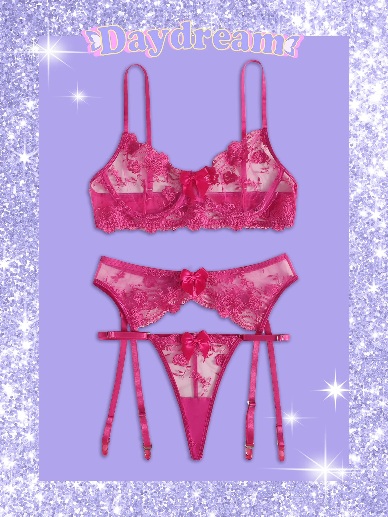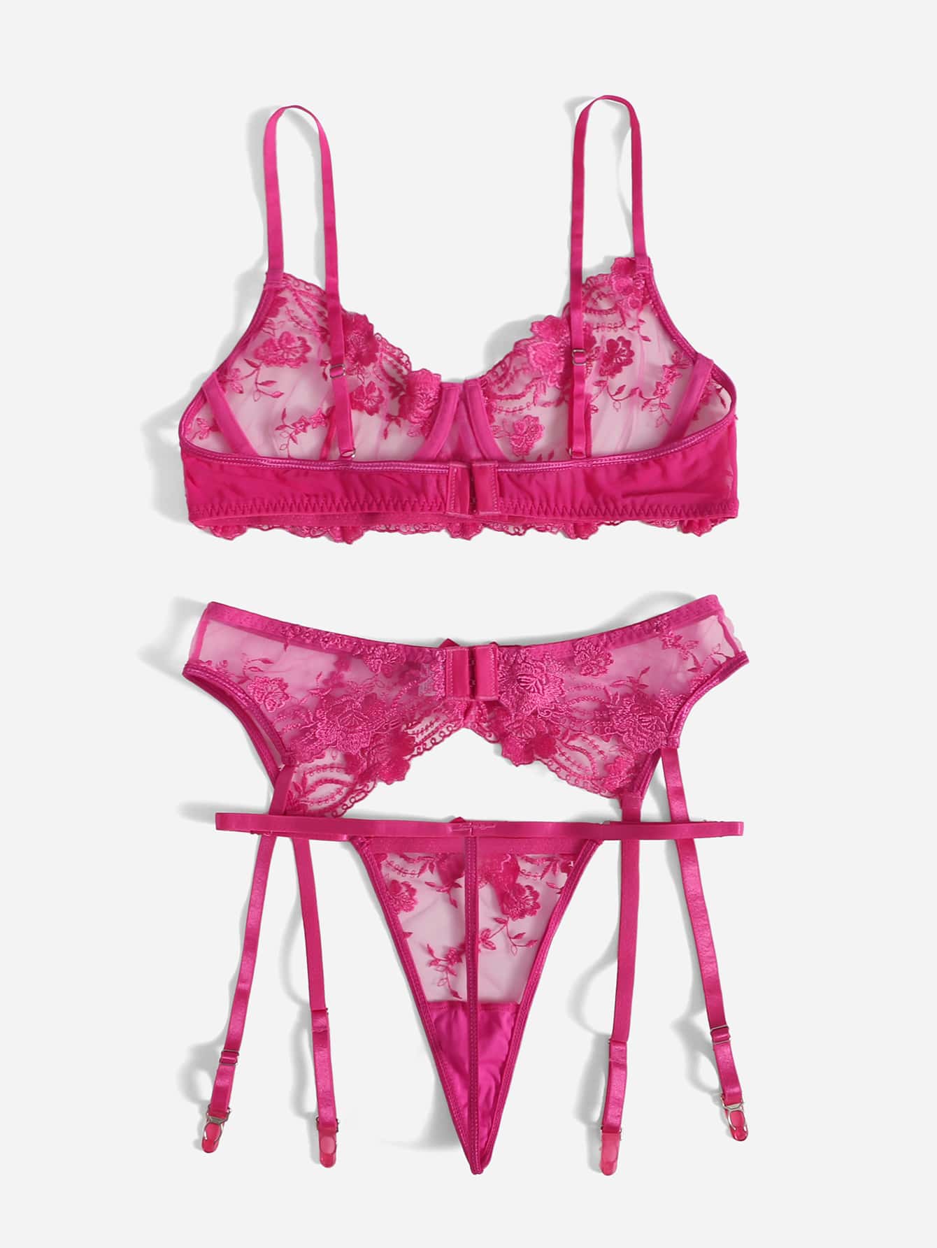 Set lingerie con ricamo floreale con ferretto giarrettiera