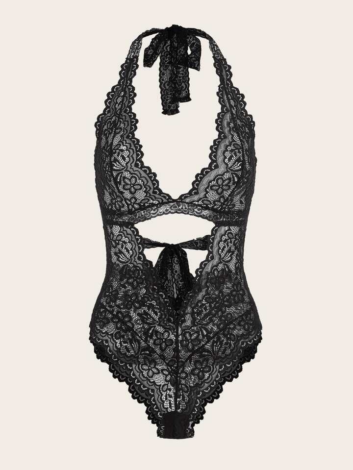 Body teddy pizzo floreale scavato halter