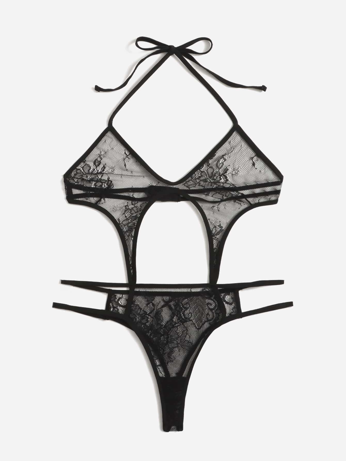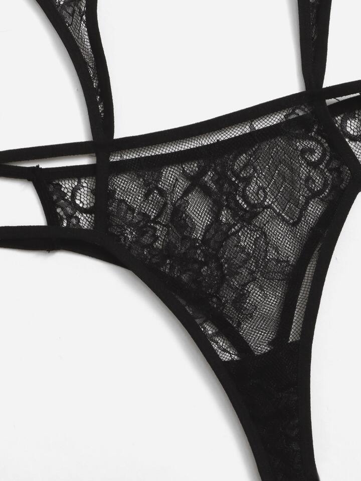 Body teddy pizzo floreale scavato halter