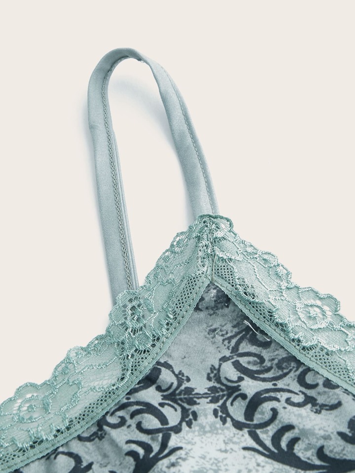 Top con bretelle sottile con stampa floreale pizzo a contrasto