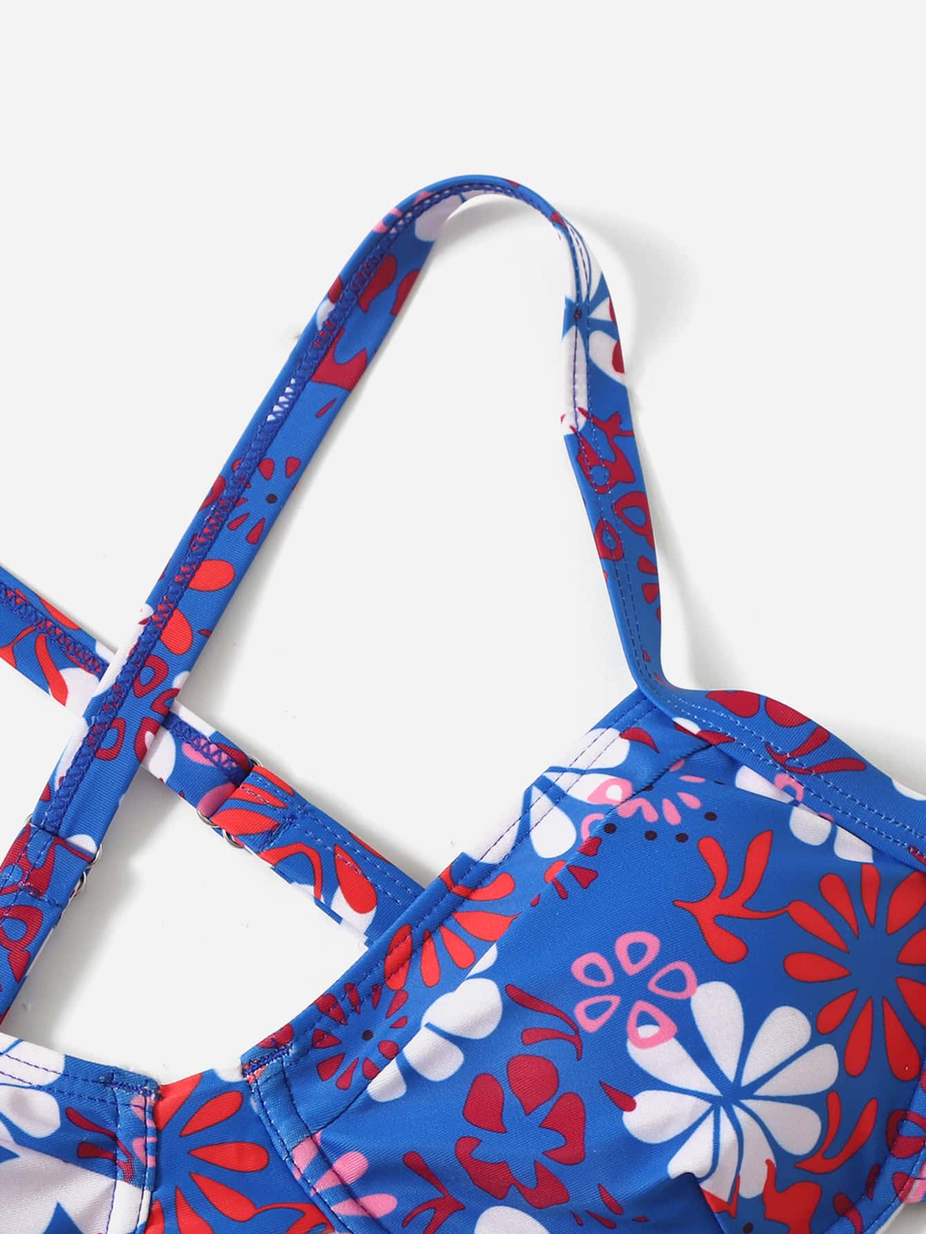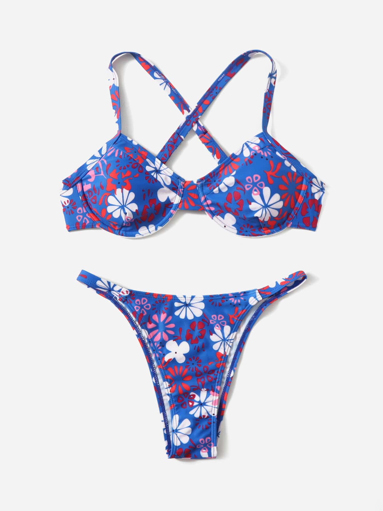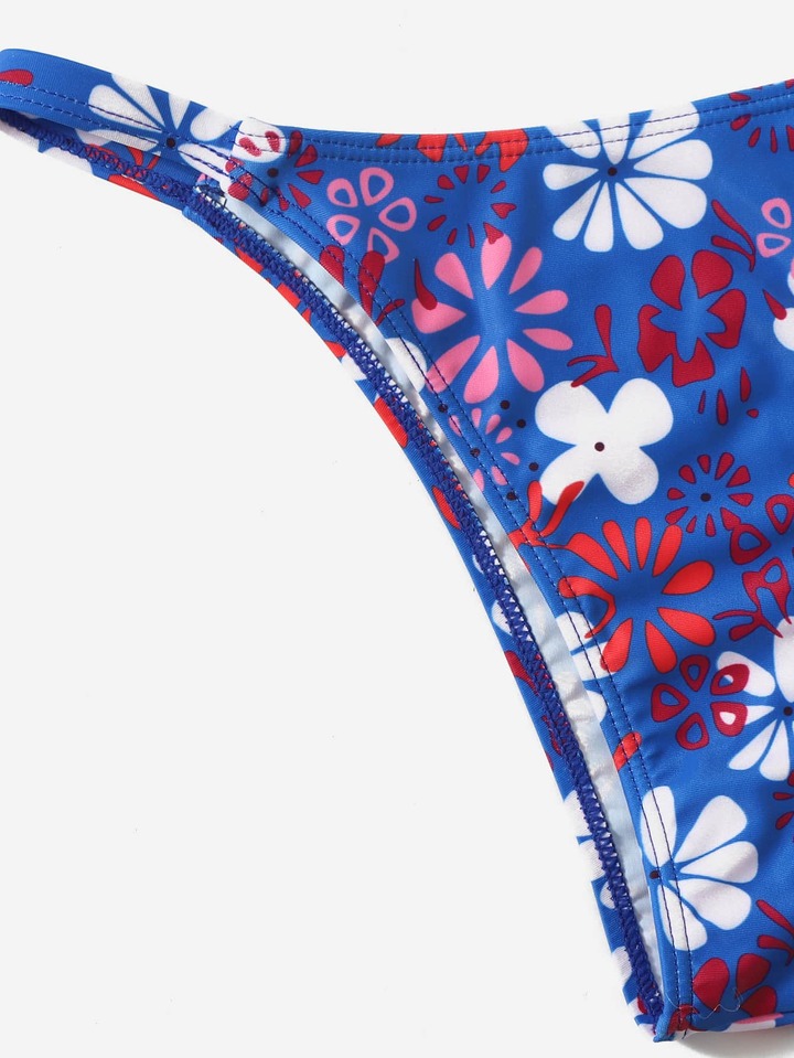 Bikini a fiori con incrocio frontale e imbottitura push-up