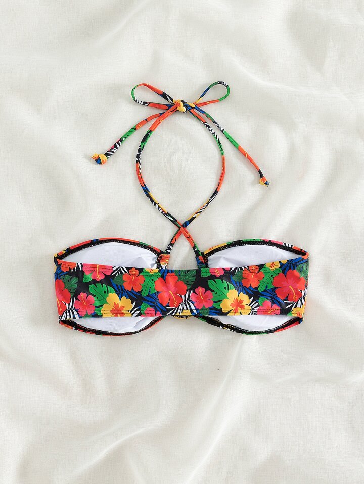 Top bikini con annodatura al collo con stampa floreale