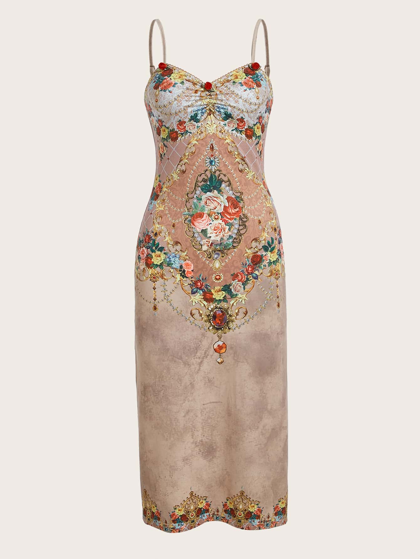 Abito con bretelle sottile con stampa floreale a fessura alta senza guanti