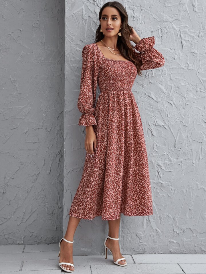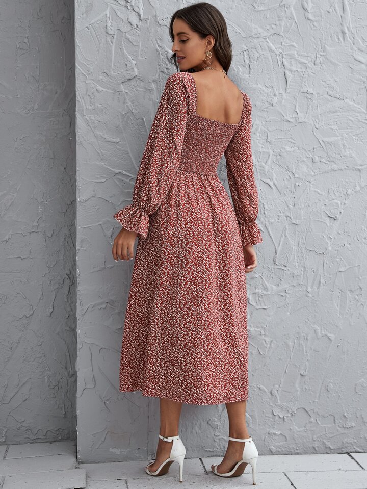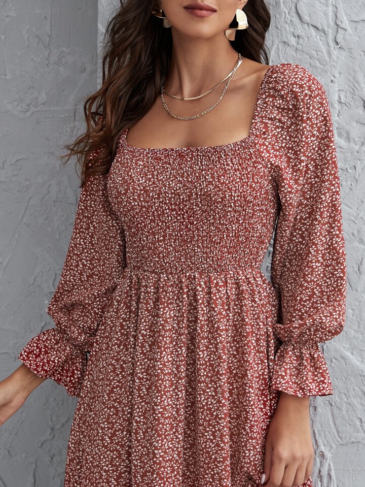 Abito con stammpa piante e manica a balze