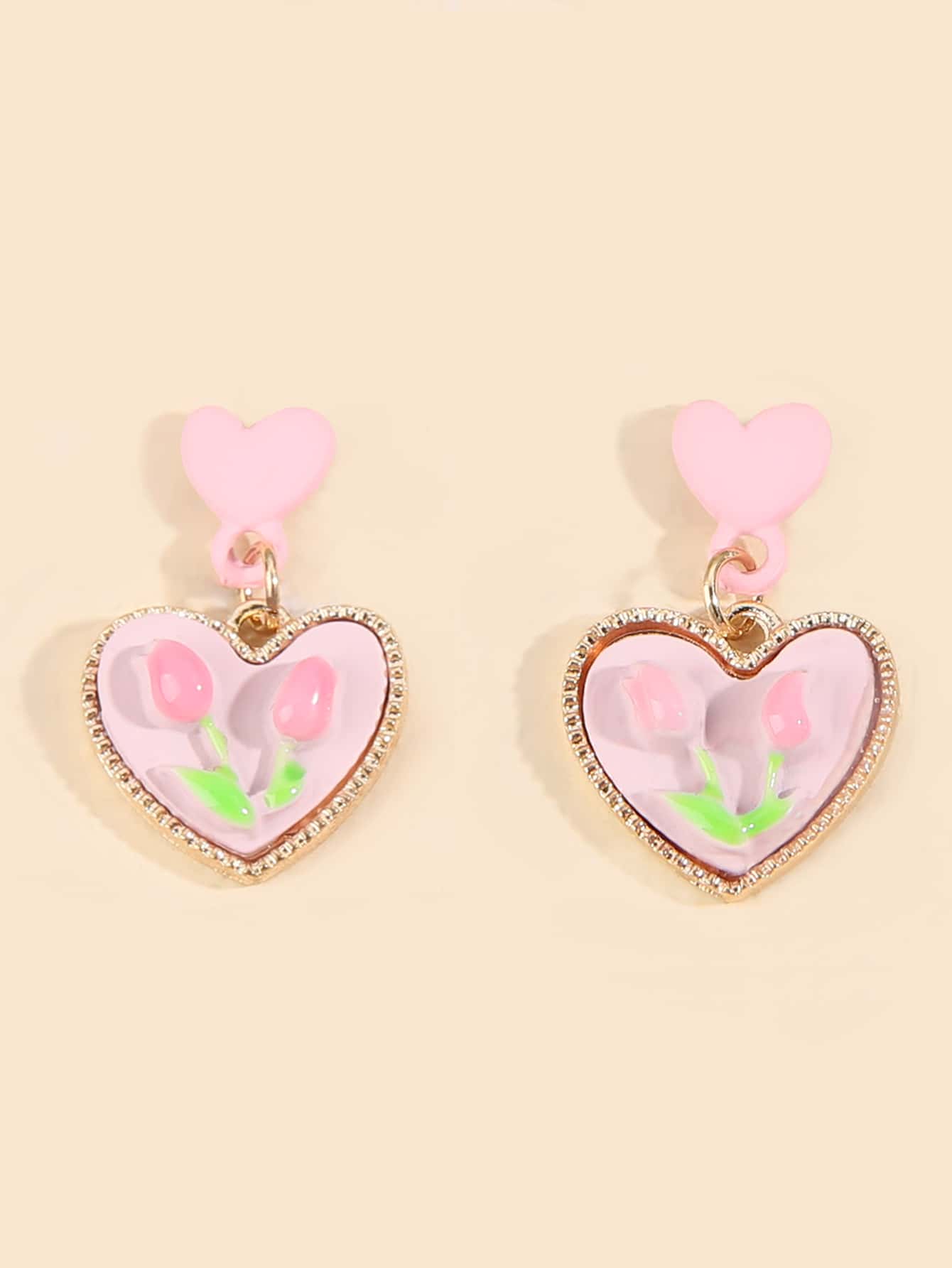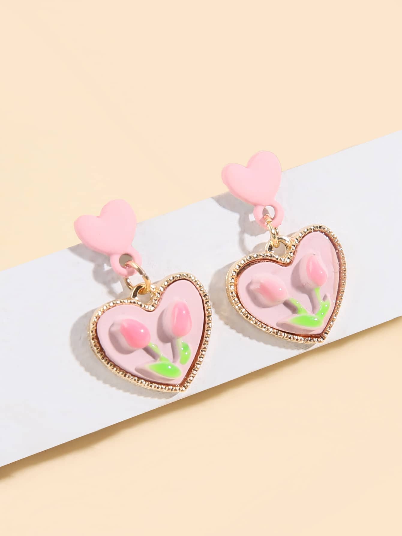 Orecchini pendenti con decorazione floreale cuore