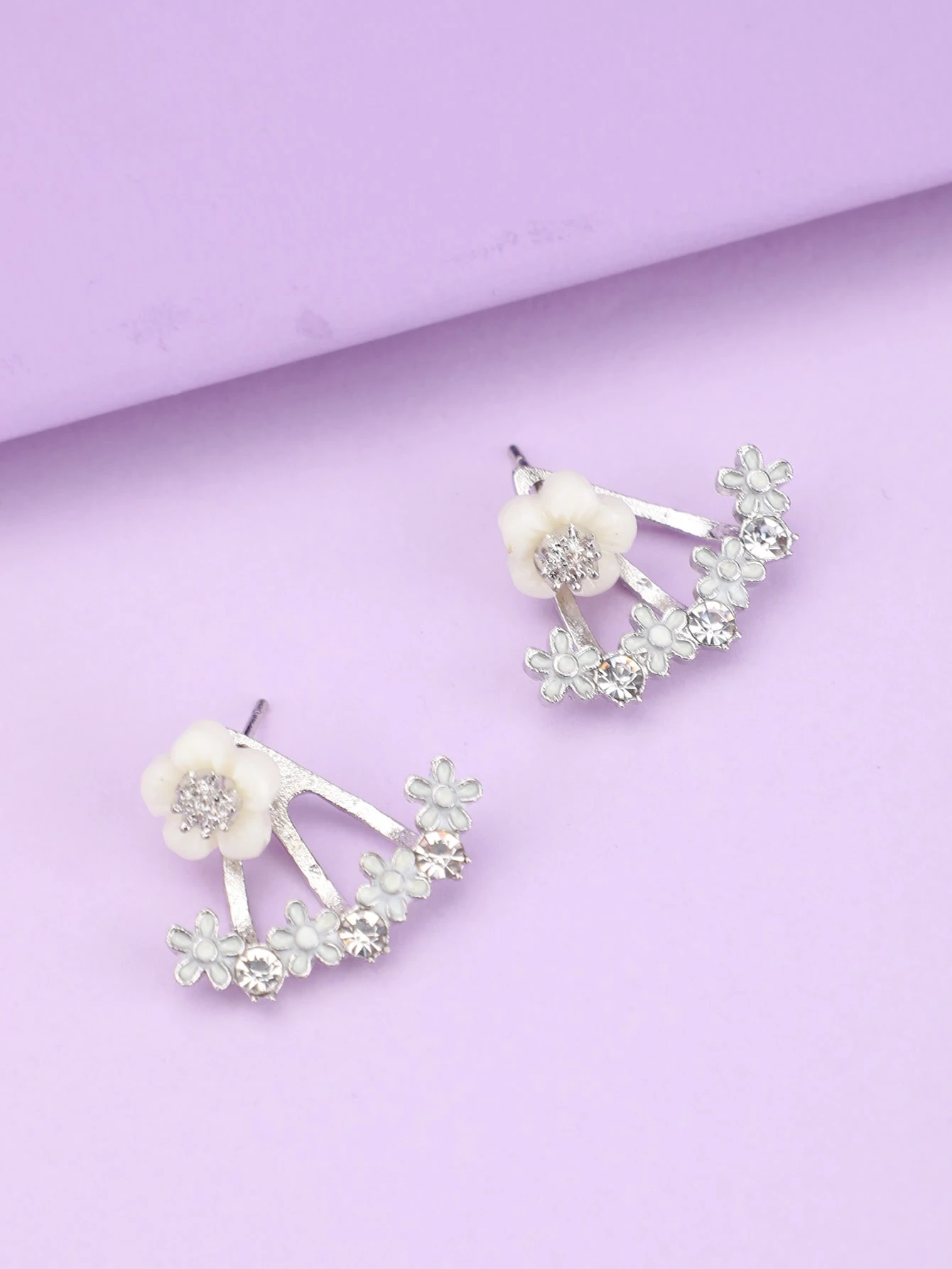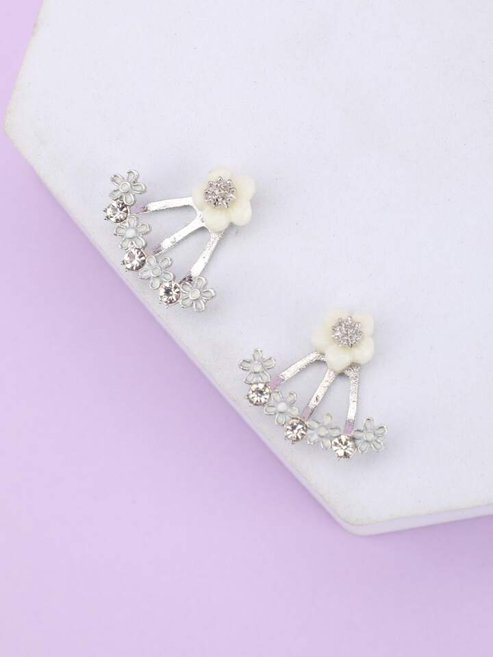 Orecchini a bottone decorato fiori e strass