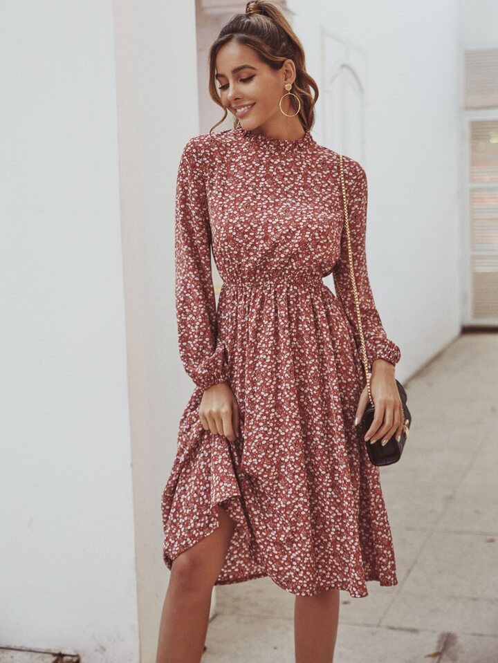 Abito A-linea con stampa ditsy floreale e collo a volant