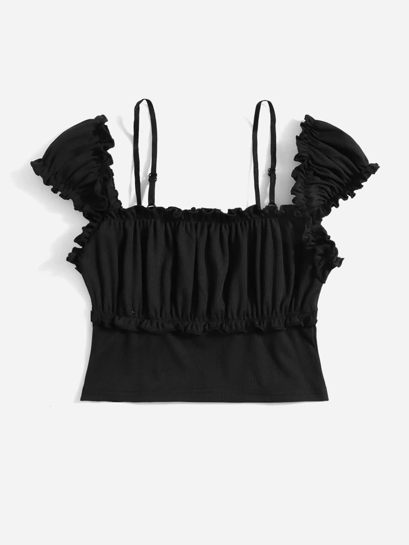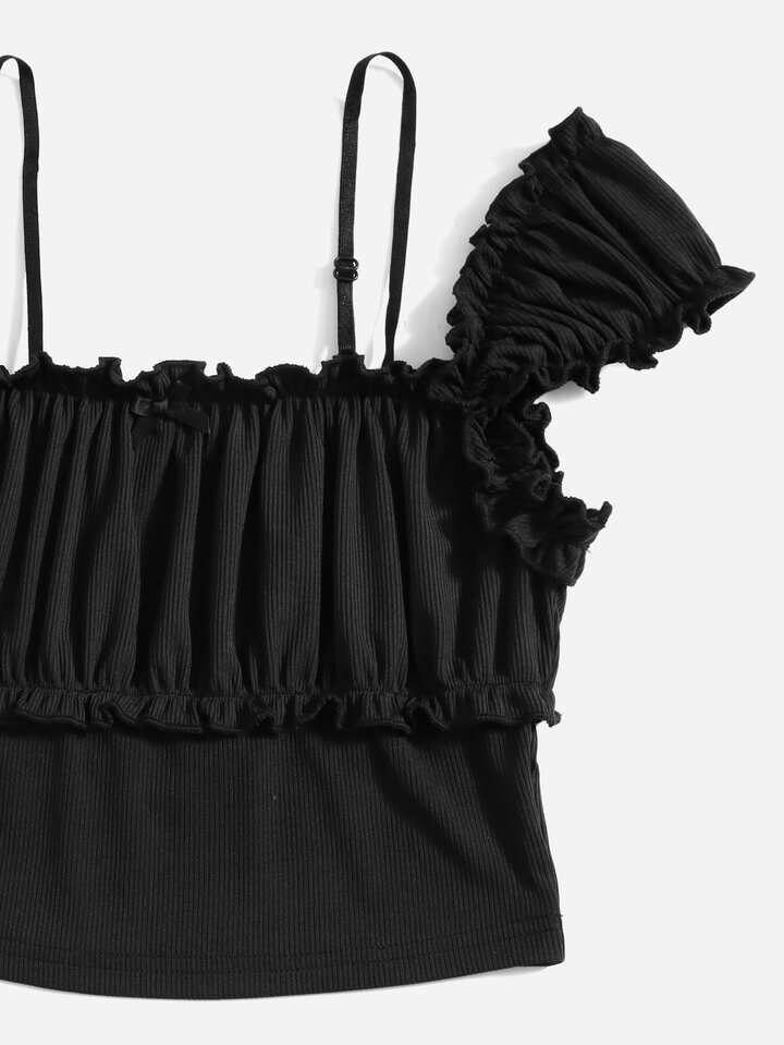 Maglietta con volant bustino arricciato manica ad aletta