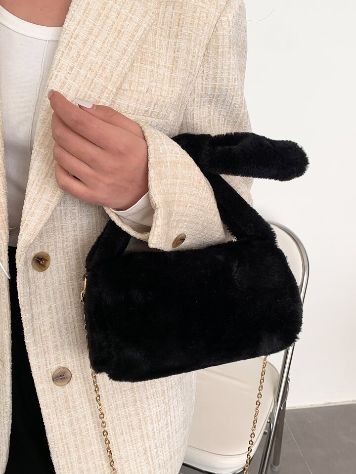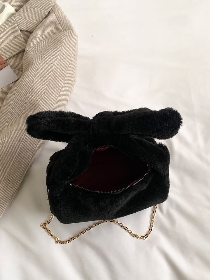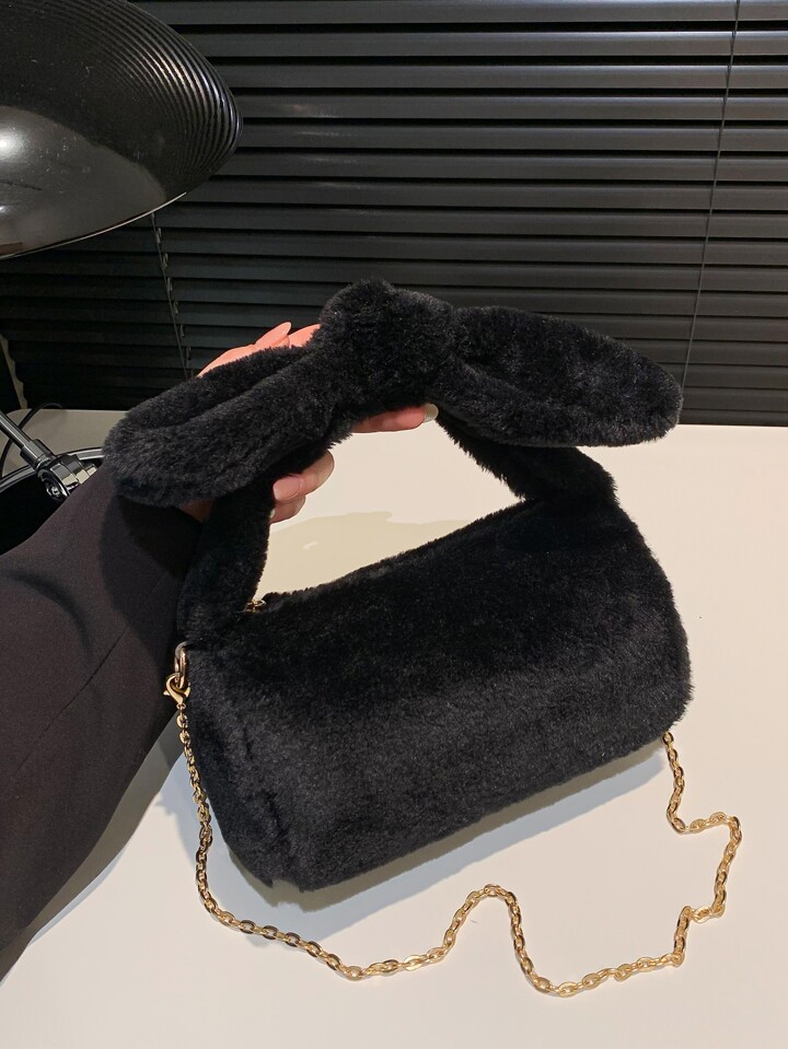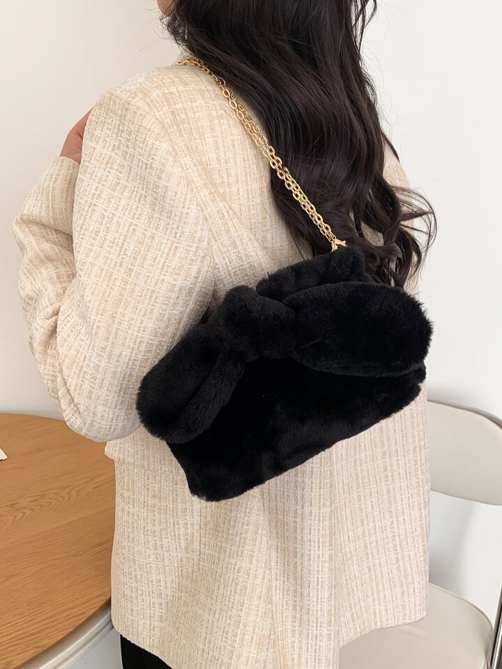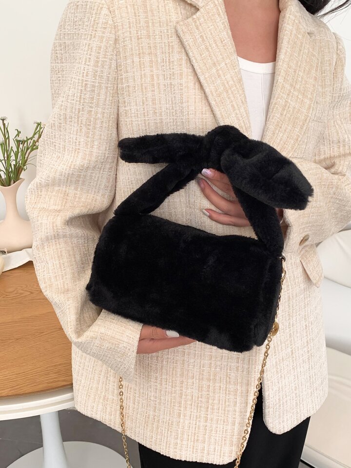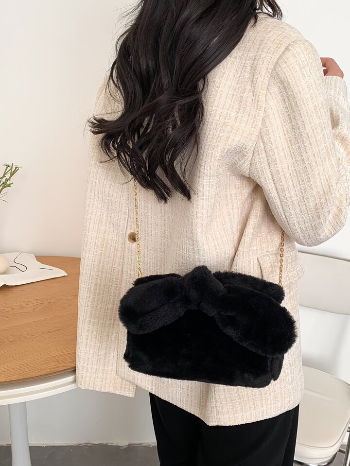 Soffice borsa a secchiello con decorazione a fiocco, morbida e pelosa, per ragazze, donne, studenti universitari, principianti e impiegati, per lavoro, ufficio, spostamenti, per l'autunno e l'inverno, inverno caldo