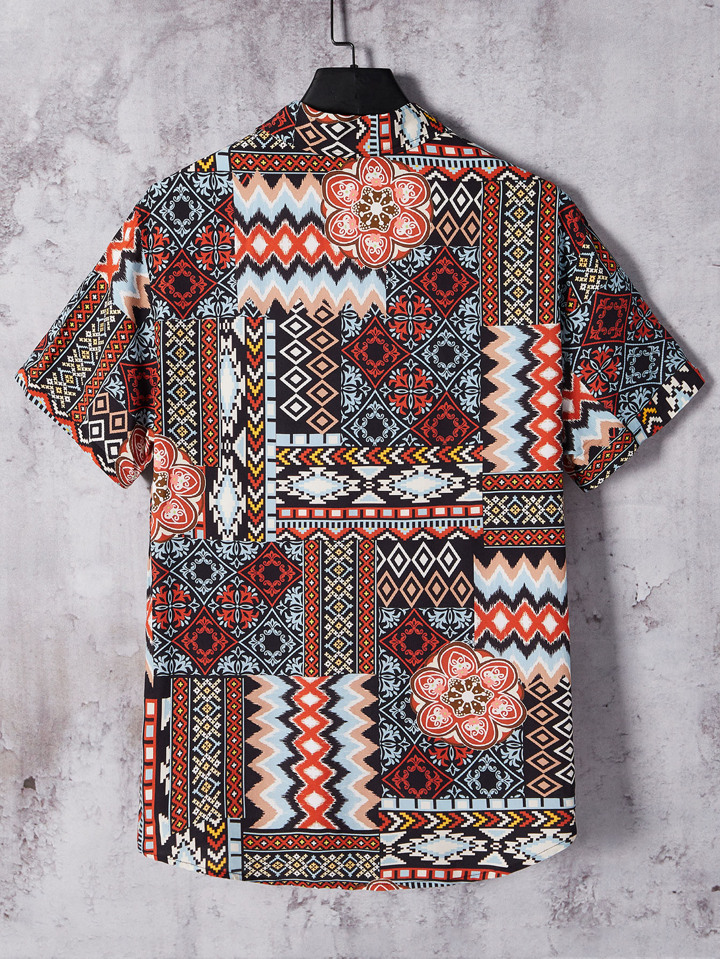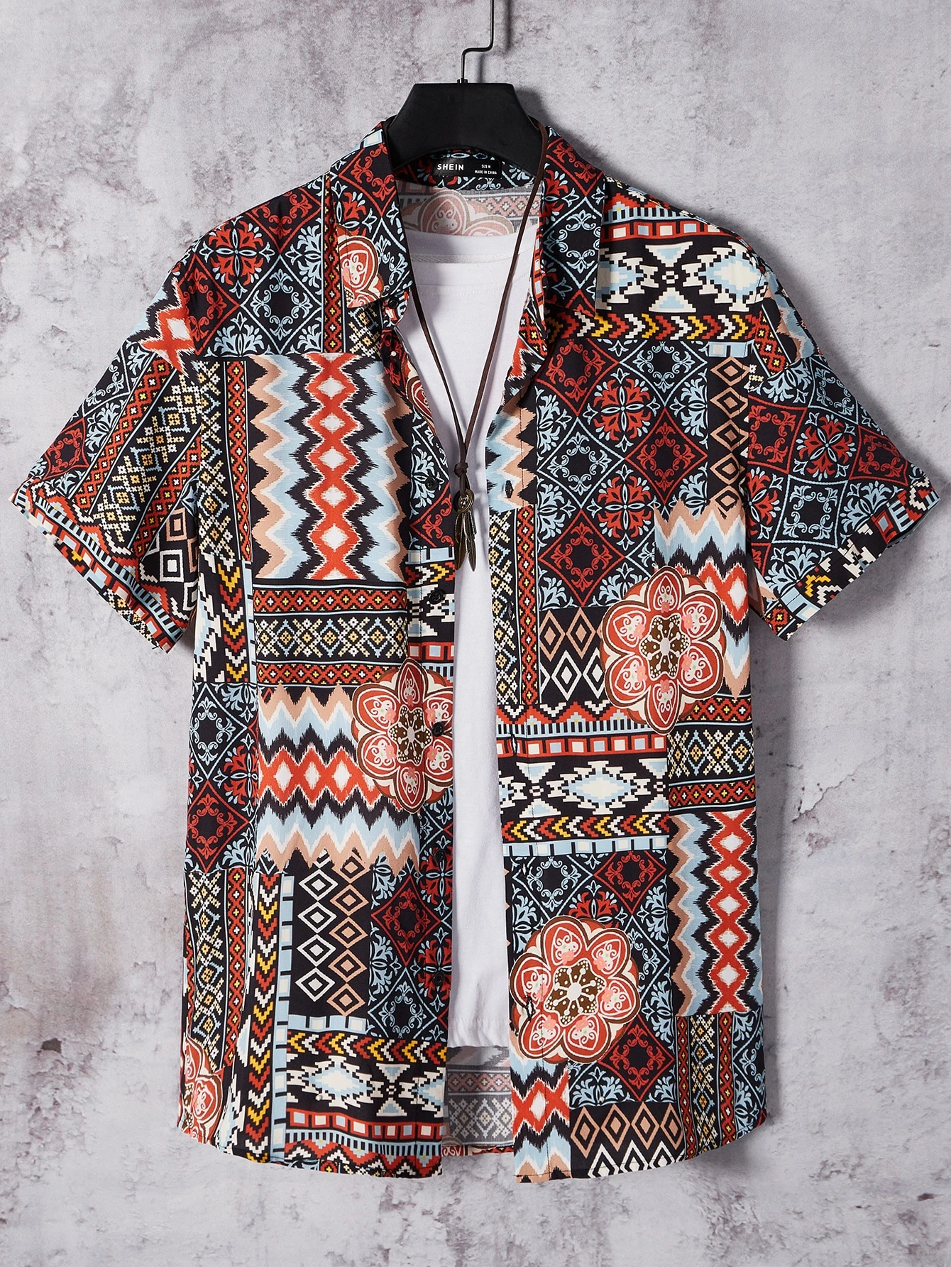 GENTILAND Uomo Camicia geo stampa patchwork senza maglietta