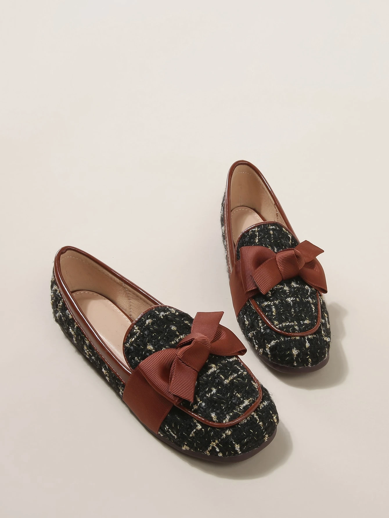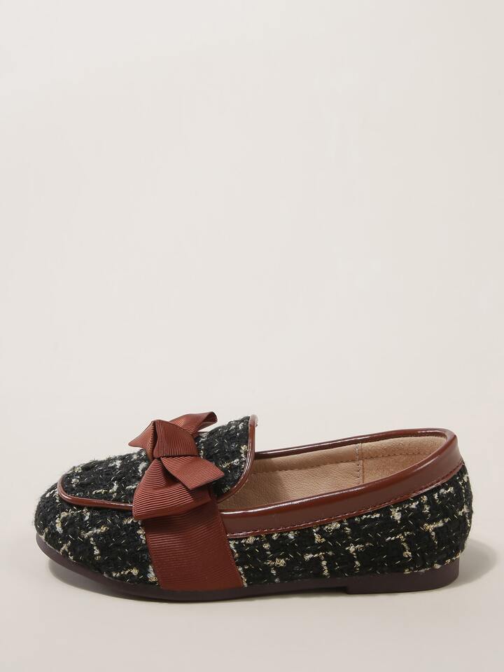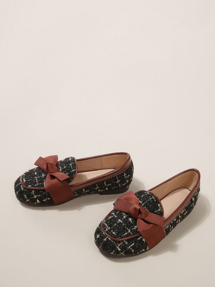 Mocassini in tweed con fiocco da ragazza