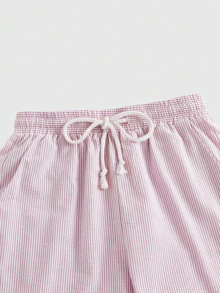 Shorts di lino casual a righe rosa e bianco con cordino in vita per donne, comfort per la casa