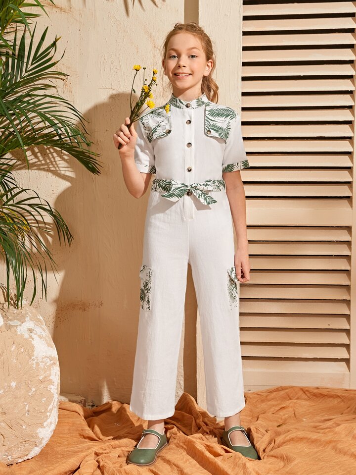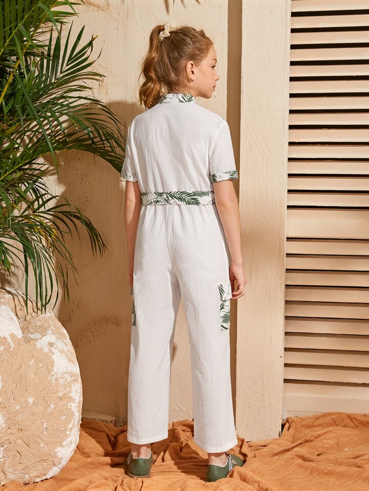 da ragazze Tute tasca con patta con cintura con stampa tropicale