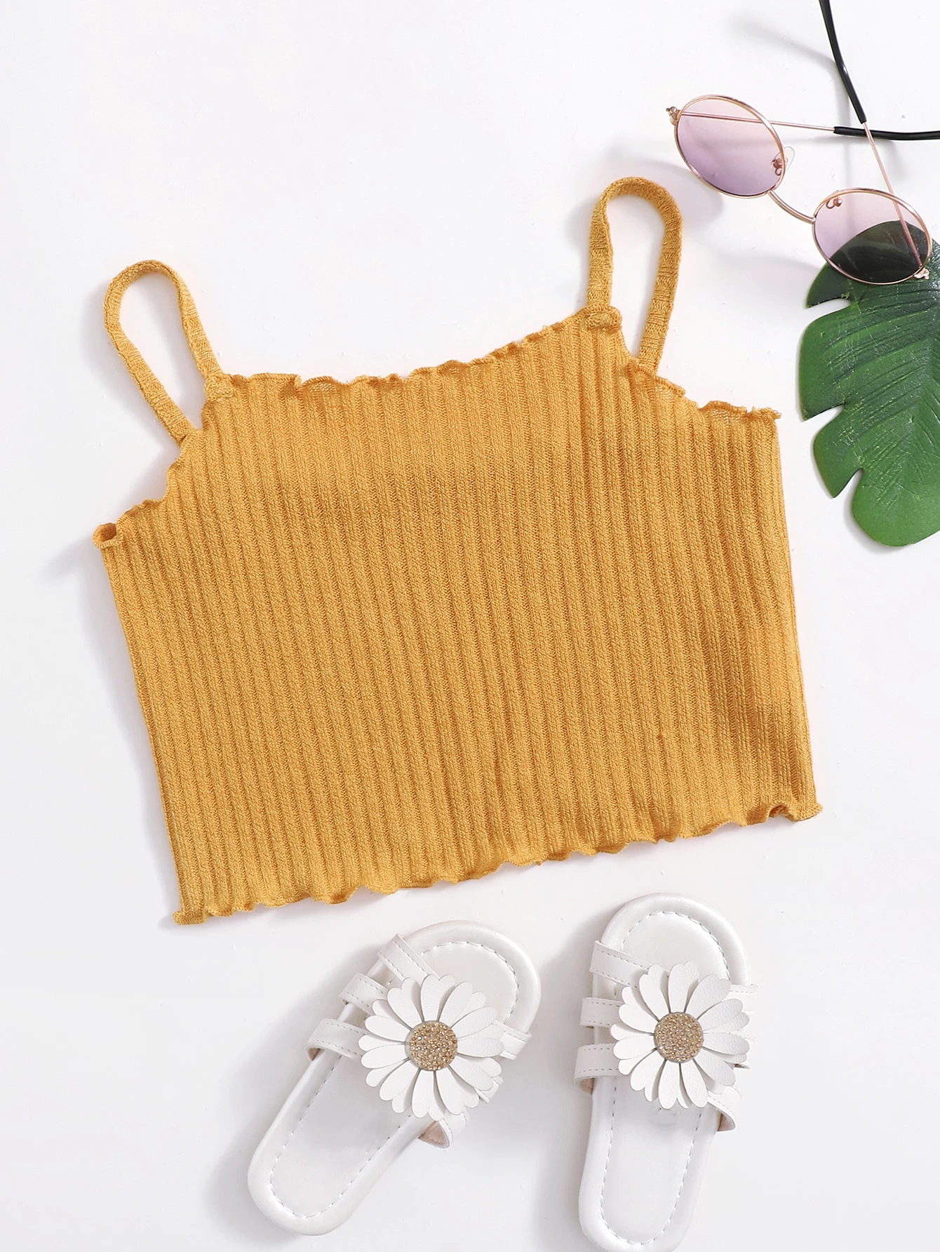 Canotte e bretelle sottile da ragazze Volant arruffati Colore unico Casual