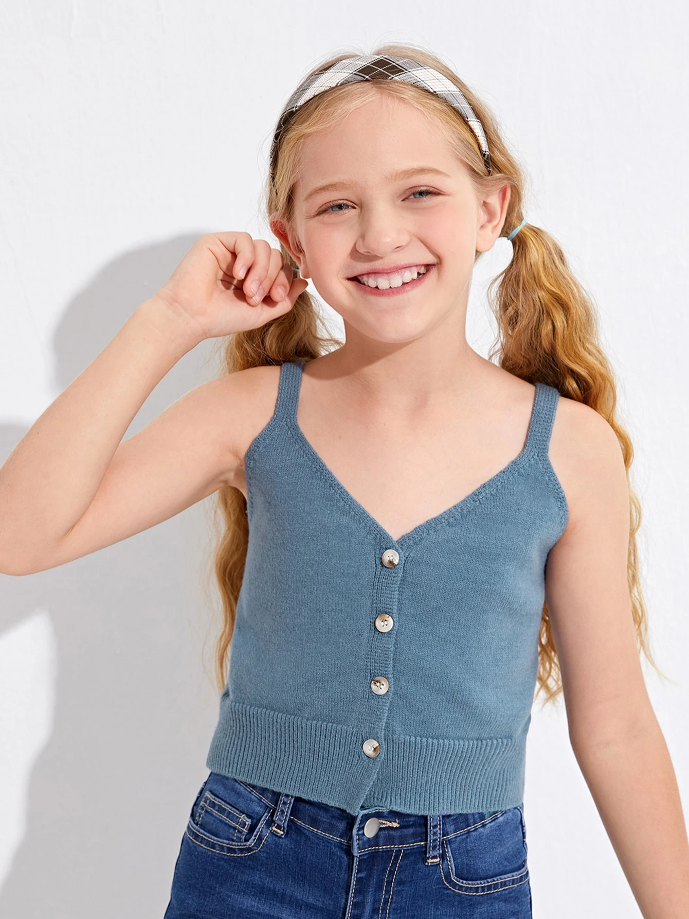 Top intrecciato con bretelle sottile monocolore con bottone frontale