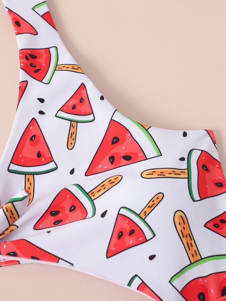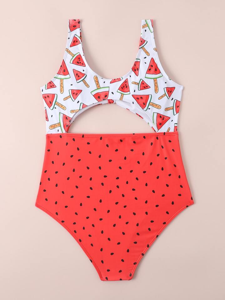 Costume da bagno intero con nodo e taglio con stampa anguria