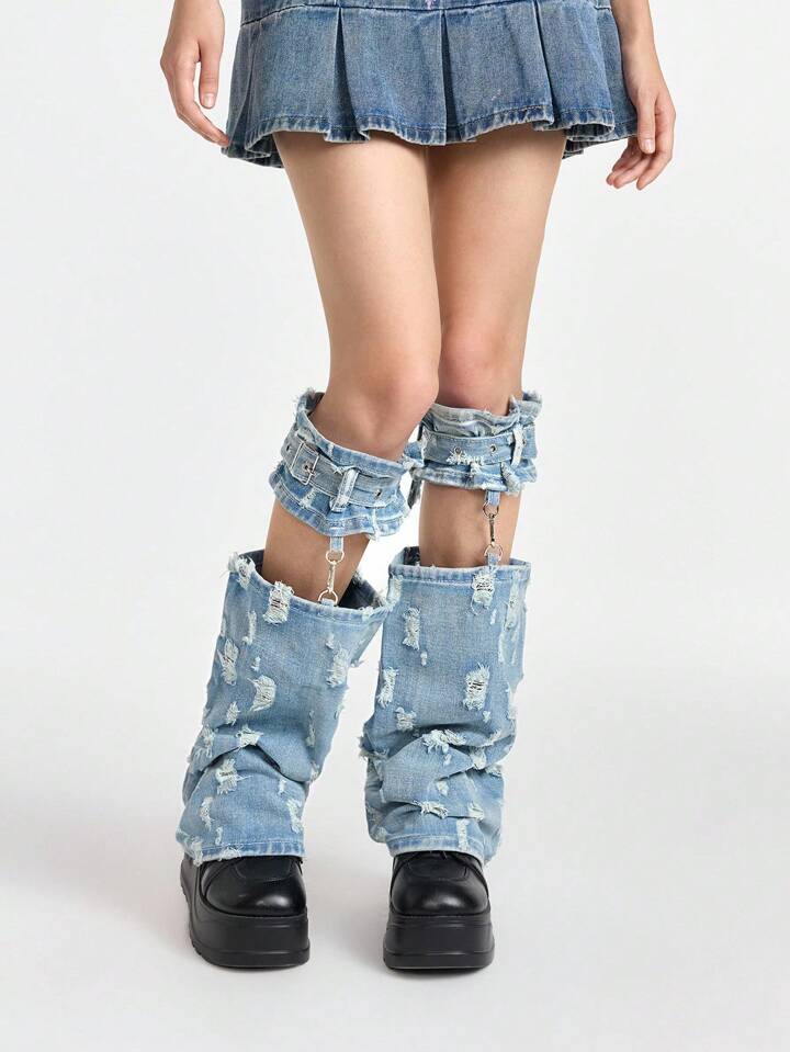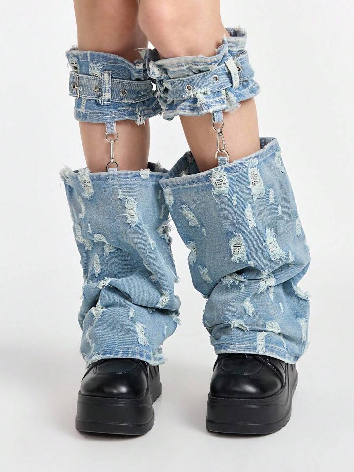 Goth 1 Coppia di Polsini alla Caviglia di Moda Strappati di Colore Blu Donna