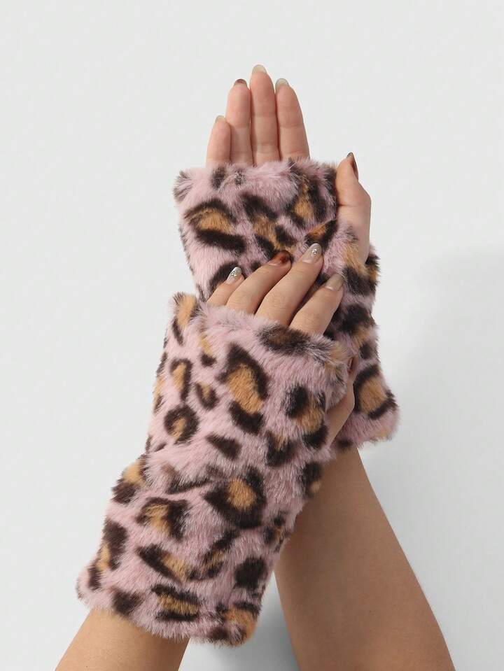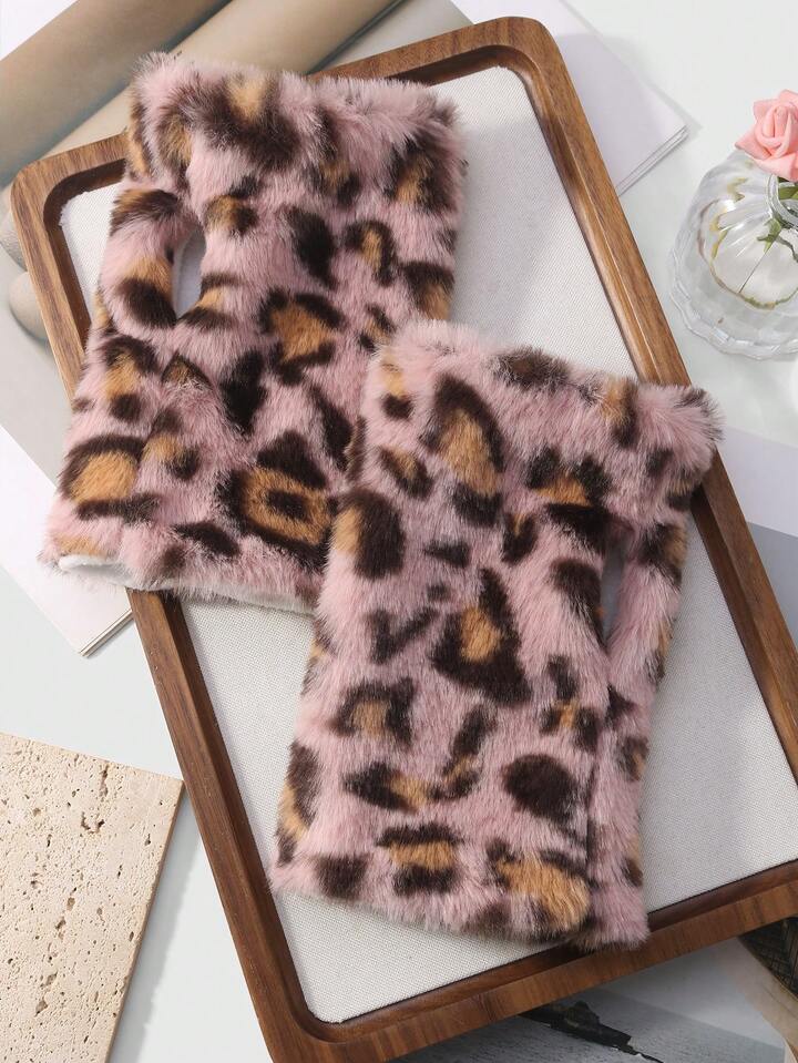 Goth 1 Coppia di guanti senza dita versatili e alla moda in stile Y2K, in morbida pelliccia di finta pelliccia di coniglio, con stampa leopardata e tigrata, adatti per outfit quotidiani di donne/ragazze, regalo per le vacanze