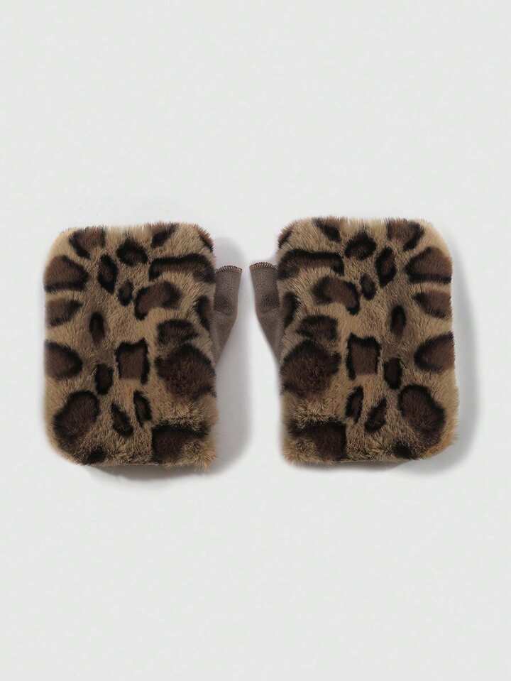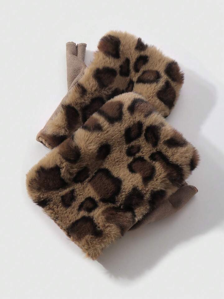 Goth 1 Coppia di guanti senza dita in finta pelliccia morbida e calda, in stile retrò Y2K, di alta qualità, con stampe di animali (tigre, leopardo), colore giallo-marrone, adatti per le donne, per uso quotidiano o come regalo per le vacanze