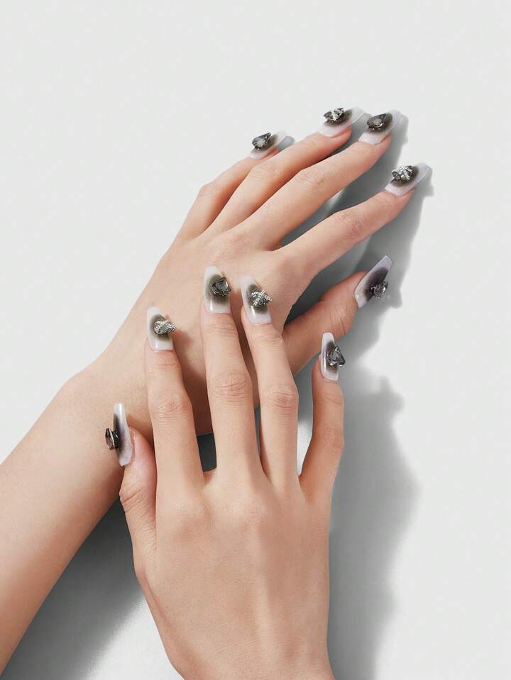 Goth 10 pezzi 3D con design cuore Unghie finte con 1 foglio bifacciale Nastro adesivo