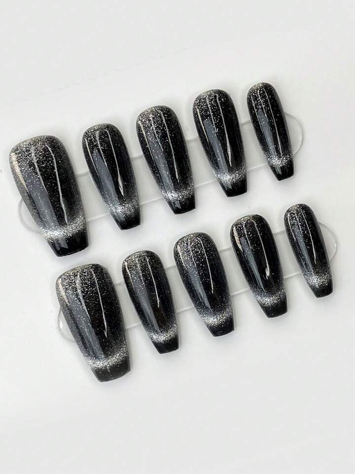 Goth 10 pezzi lungo bara brillante Unghie finte Kit