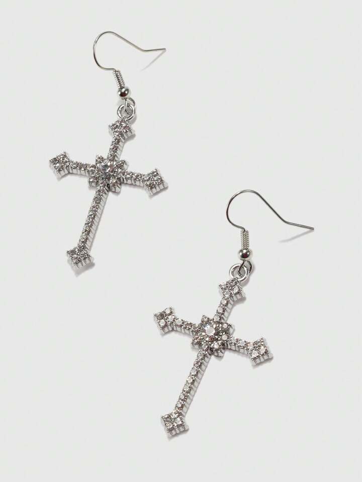 Goth 1 Paio Di Orecchini Pendenti Con Croce E Zirconi Alla Moda
