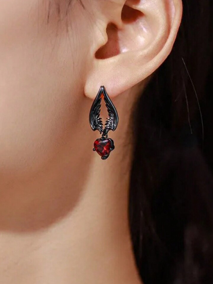 Goth 1 paio Orecchini a bottone ala & a forma di cuore pendente