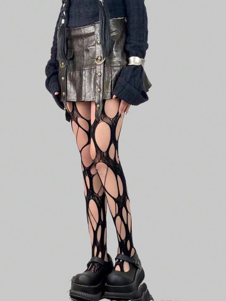 Goth 1 Paio Calze Fishnet Punk Vuote Nere Per Donne, Adatte A Tutte Le Stagioni