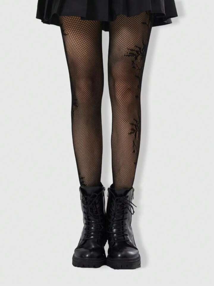 Goth 1 pezzo Collant/Leggings/Calze a vita alta sexy ed elastiche con motivo floreale nero per donne