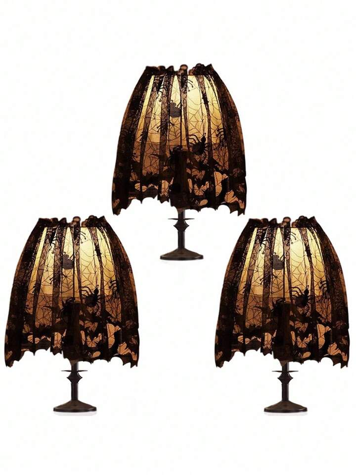 Goth 1 Pezzo Paralume decorativo in pizzo nero, copritavola in stile Ognissanti, asciugamano per camino, bandiera da tavolo, tenda, decorazione personalizzata per paralume, runner da tavola, tenda per porta in stile strega con ragnatela in pizzo nero, decorazione per la casa