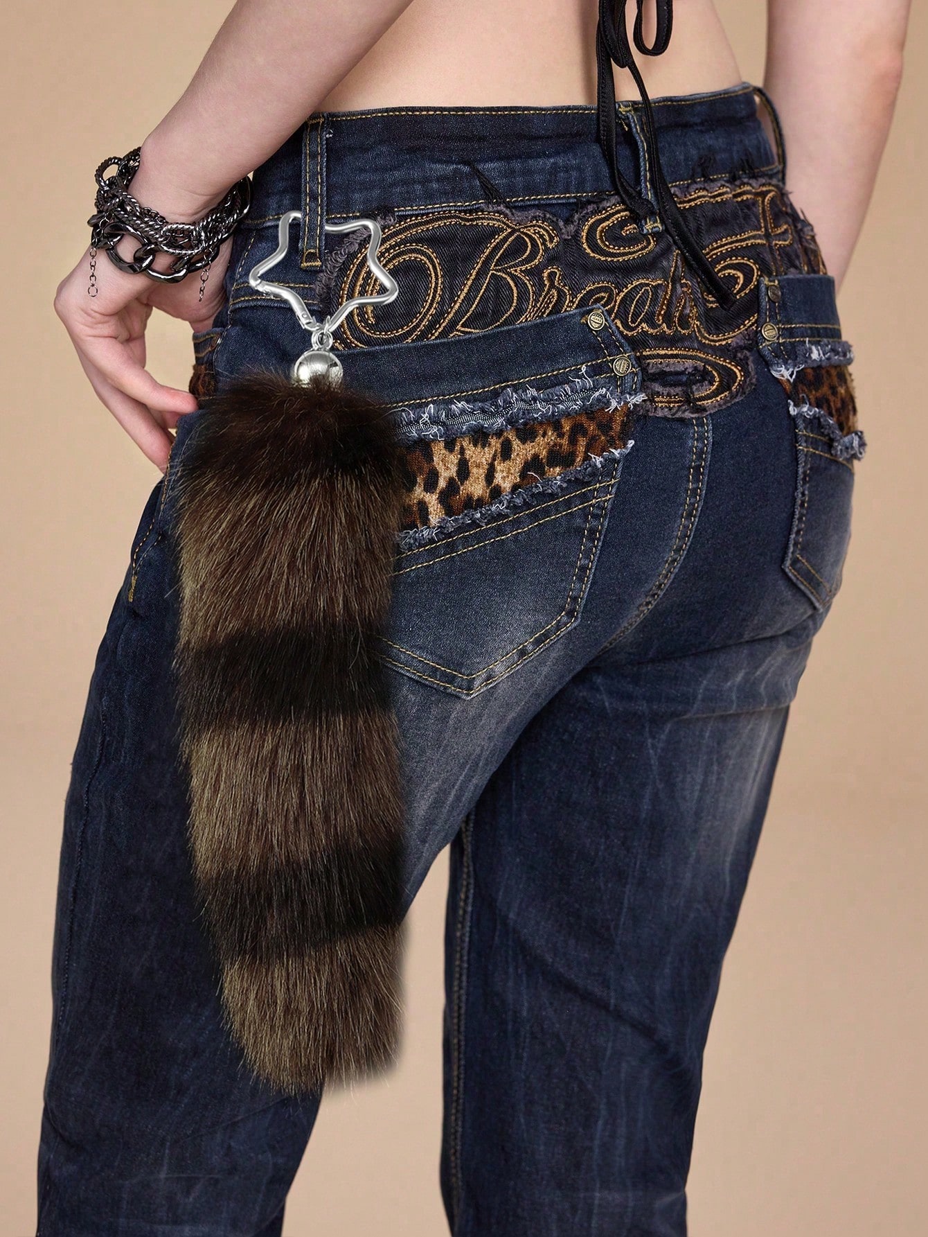 Goth 1 pezzo Elegante e carino portachiavi/portachiavi con coda di volpe finta in stile vintage marrone a righe, accessorio da donna, adatto per uso quotidiano e regali