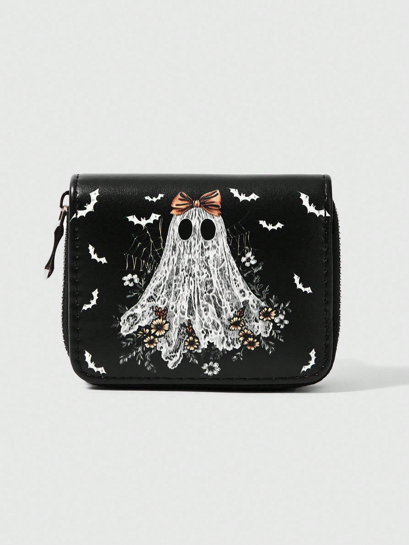 Goth 1 pezzo Portamonete con cerniera e motivo minimalista di crisantemo fantasma per donna