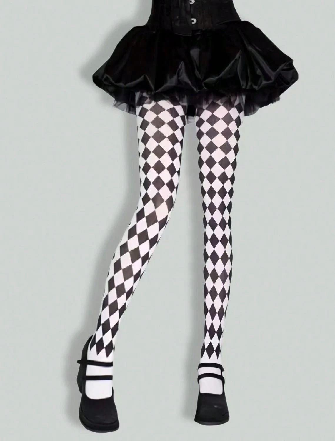Goth 1 pezzo Collant/Leggings/Calze donna sexy asimmetriche in tessuto elastico a quadri bianchi e neri