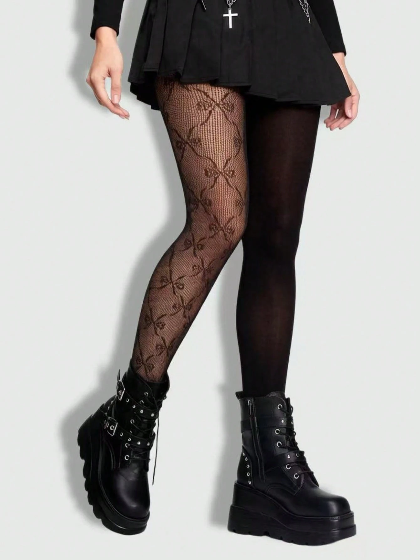 Goth 1 pezzo Collant/Leggings/Calze donna sexy asimmetriche in tessuto elastico a quadri bianco e nero