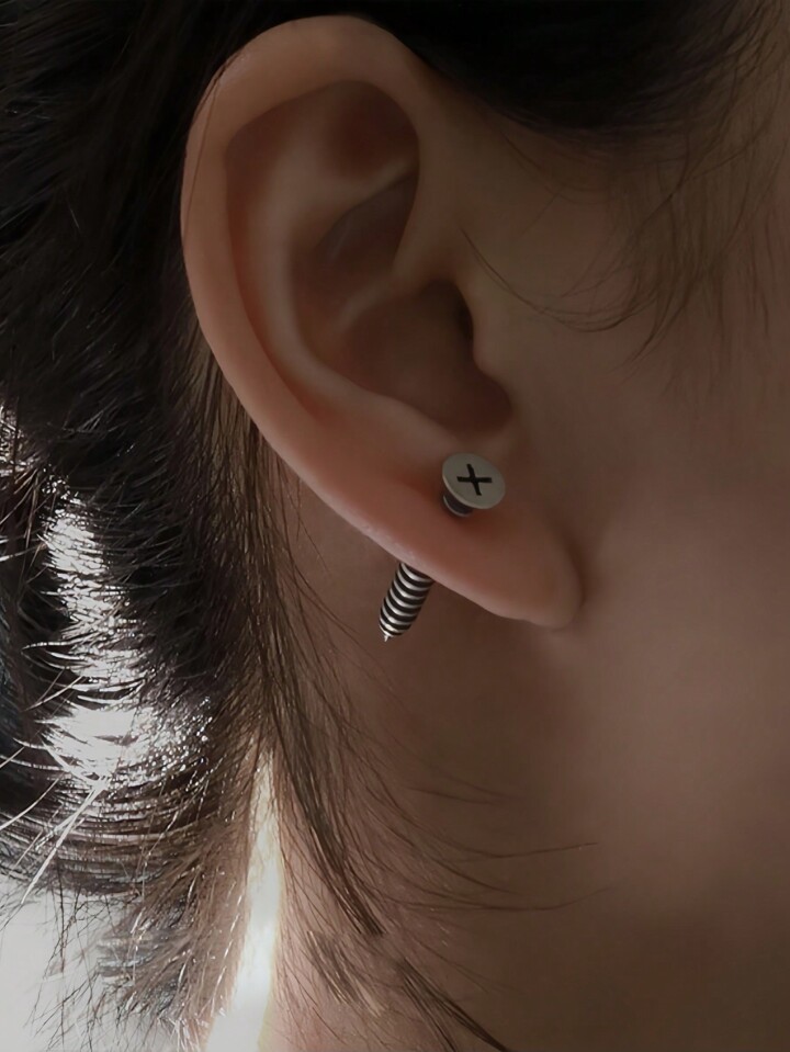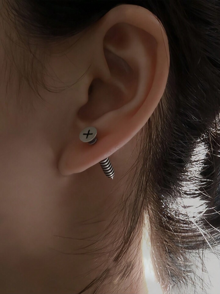 Goth 1 Pezzo Orecchino A Vite A Perno Metallizzato