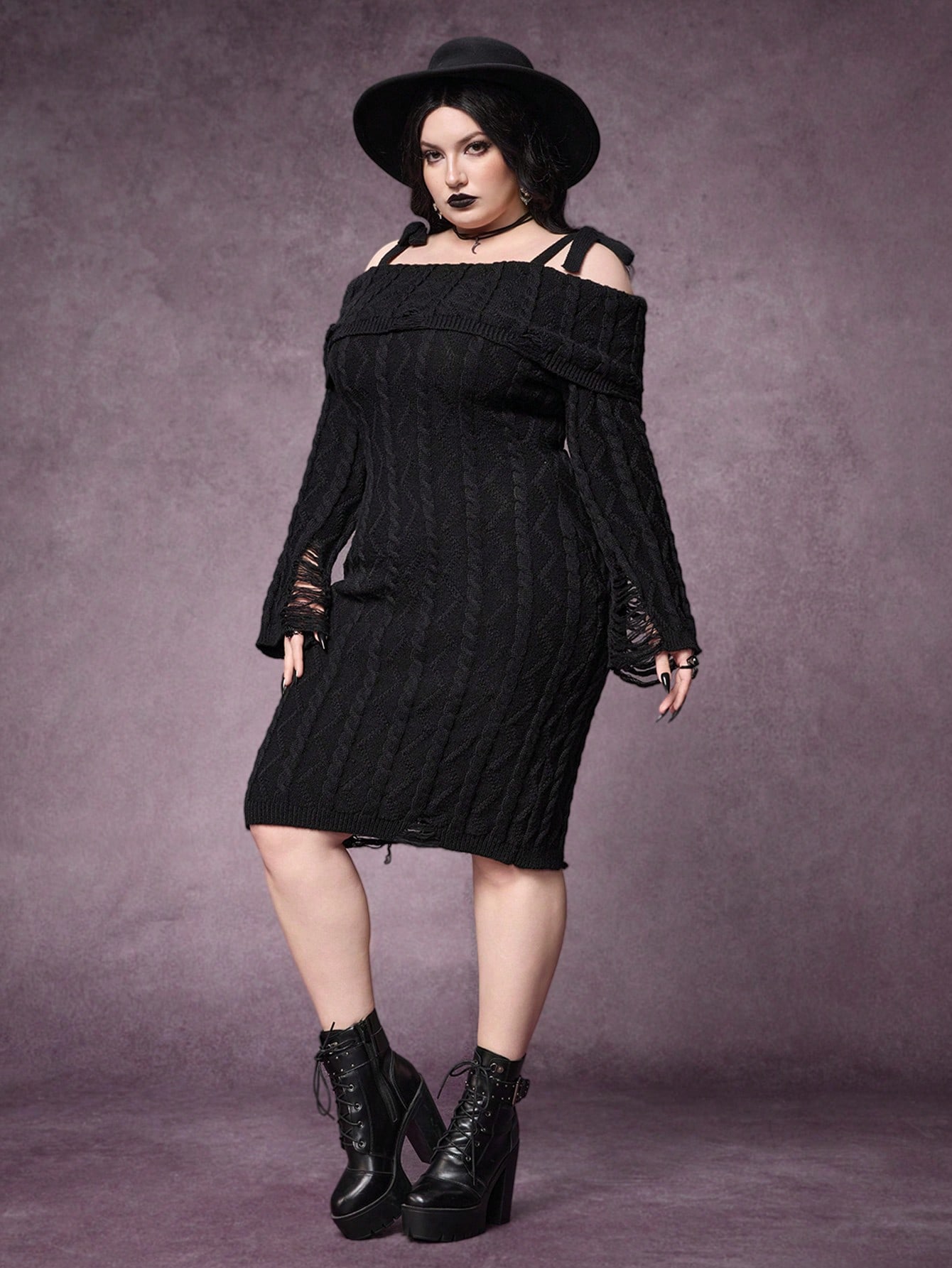 Goth 1 pezzo Abito aderente da donna taglie forti con design a spalla strappata e spalline
